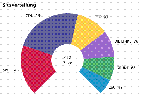 verschiedene Parteien: CDU/CSU, SPD, FDP, Die Linke und die Grünen.
